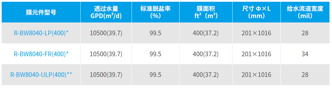能耗低 改進優化芳香族聚酰胺脫鹽層、開發更大比表面積,滿足在相同產水量要求時,降低運行壓力,節約能源。